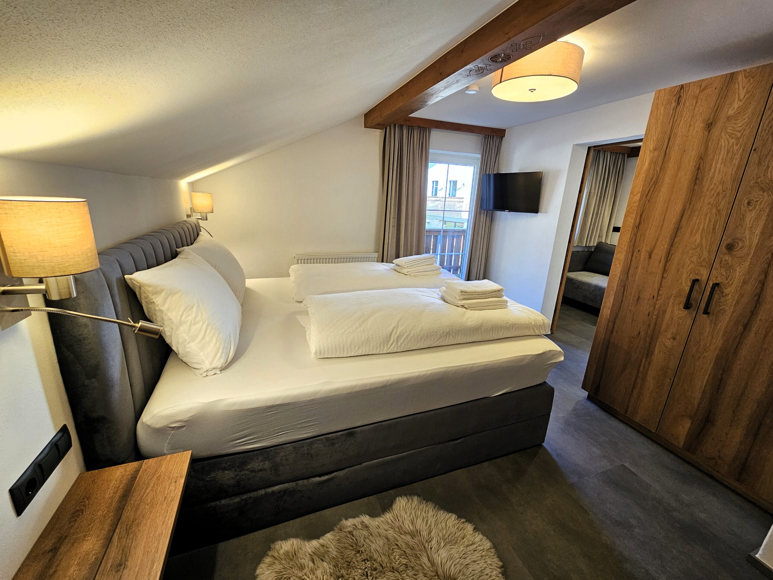 Unser Apartment Premium II für 4-6 Personen ist die perfekte Wahl für Familien. Mit viel Liebe zum Detail eingerichtet, versprüht es den gemütlichen Charme der Alpen. Holzvertäfelungen, warme Farben und rustikale Elemente sorgen für eine behagliche und einladende Atmosphäre, in der Sie sich sofort wohlfühlen werden.