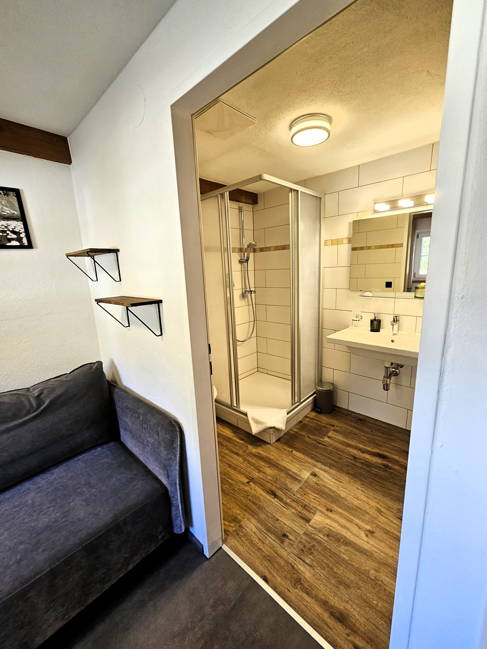 • 1 Doppelzimmer mit Dusche, WC und Schlafsofa (140 cm breit)